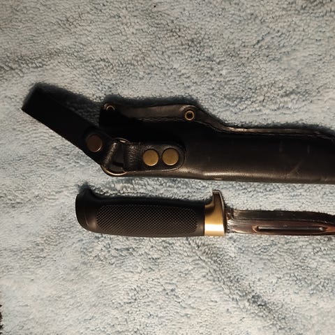 Hyväkuntoinen Pointer-tuppinen puukko.