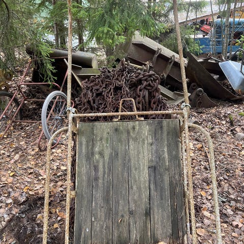 Vanhat hevoskärryt pihakoristeeksi