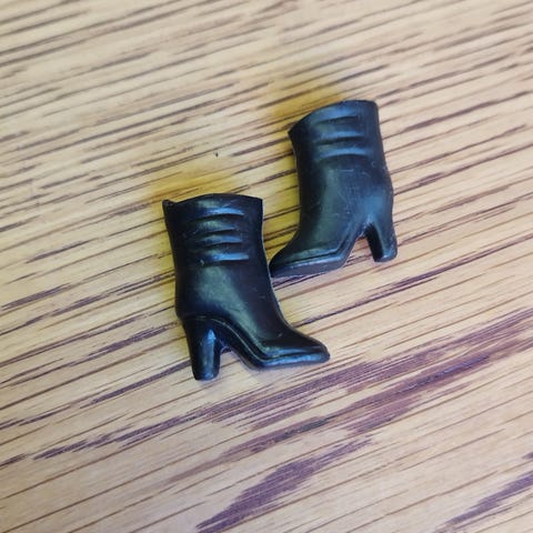 Myydään 2 paria pienen nuken kenkiä. Hinta yhteensä 1 euro.
