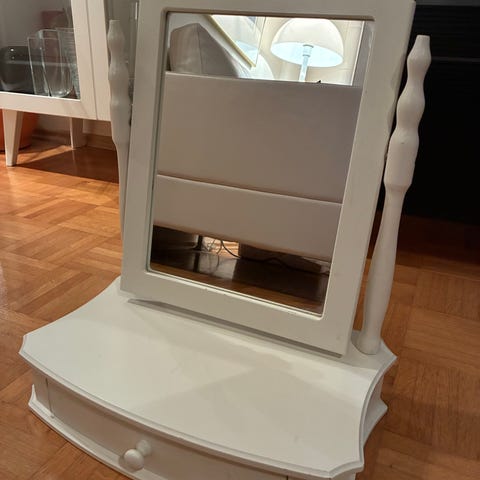 Puinen kolmiosainen peili. Näyttävä kokonaisuus. Peilit taittuvat. Ostettu Tapiolan sisustusliikkeestä aikoinaan. Ovh. yli 200 euroa. Vain nouto.