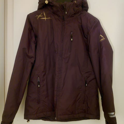 Uuden veroinen toppatakki. Väri on tumma lila. Koko 40. Vyötärölla säätö. Kainalo-kainalo 51 cm ja olka-helma 79 cm
