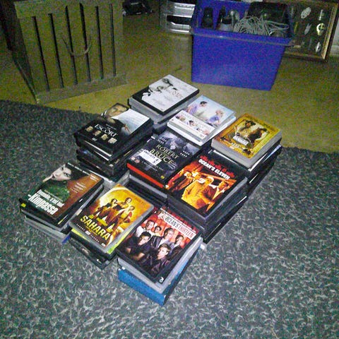 Myynnissä erilaisia elokuvia. 1€/kpl