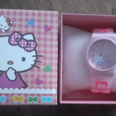 Myydään Hello Kitty rannekello.Kunto erinomainen.Voin postittaa,ostaja maksaa postit.