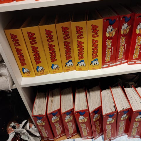 Kaikki Aku Ankka lehdet siististi kansioissa.