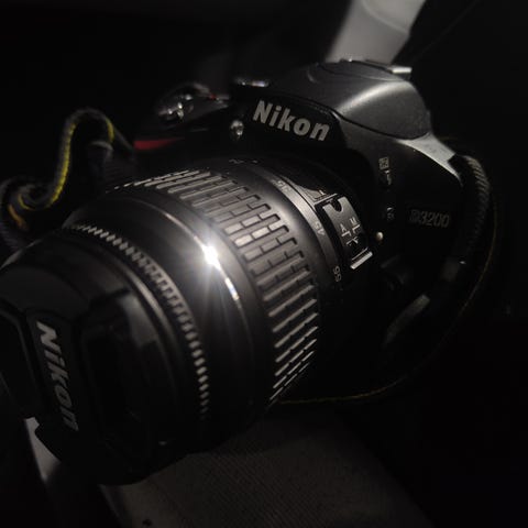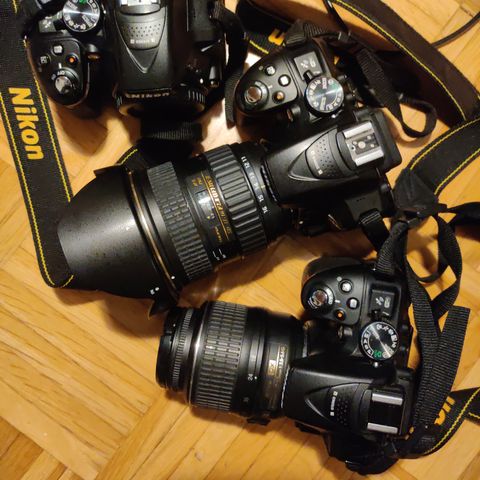 Kamera kahdella putkella ja salama. ja objetiivi AF-S Nikkor 18 200 mm 1:3,5-5,6 G ED. Salama Speedlight SB-800. Laturi.