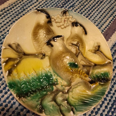 Kaksi keramiikkataulua. Tekijä ruotsinsuomalainen keramiikkataiteilija Aimo Nietosvuori. Valmistettu JIE-keramiikkatehtaassa, Helsingborgissa.