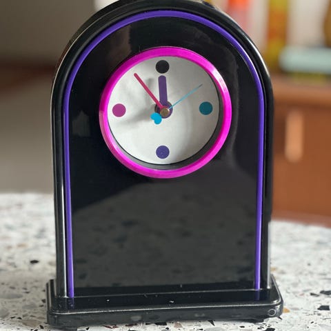 On vielä myynnissä samantyylininen pöytäkello mutta pienempi K 18cm+7cm L 25cm S 6cm hinta 20€