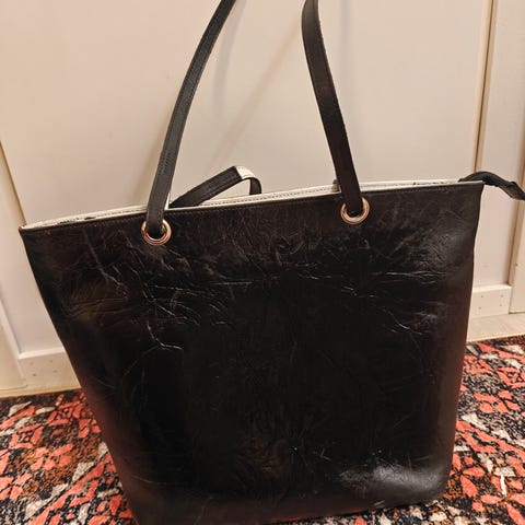 Käyttämättömäksi jäänyt vetoketjullinen laukku, Estelle, aitoa nahkaa.