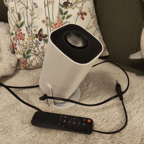 Tätä on käytetty noin 100 tuntia ja on ostettu noin 4 vuotta sitten uutena. Käytin Tätä valkoisella seinällä ja hyvin toimii. Mukana Android käyttöjärjestelmä, hiiri ja 4m pitkä hdmi johto