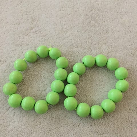 Puinen rannekoru, helmen halkaisija 1,7 cm. Siistikuntoinen.