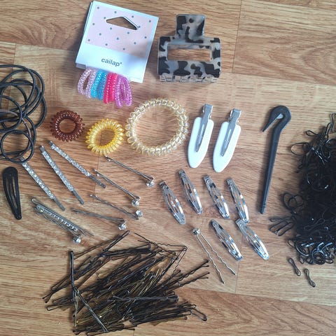 Glitterin Hiusrullia Pak.3 euroa. Kokonaan pyöreä Hiusharja 3 euroa. Kissa Hiuskampa 2 euroa.