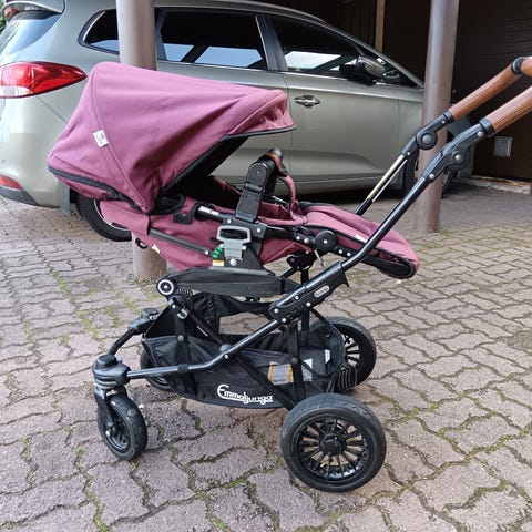 Aina sisällä säilytetty Emmaljungan super vikingit. Mukaan tulee kuvassa näkyvä vaunukoppa, ratasosa sekä erikseen ostetut jalkapeite, tavaralokero, vaunuverho.