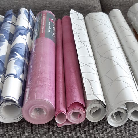 Kaksi avaamatonta tapettirullaaa.