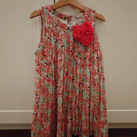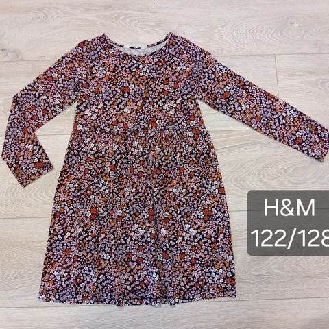 H&M hihaton ruskea-puna-vihreä kukkamekko 122/128cm Hinta 3 euroa.