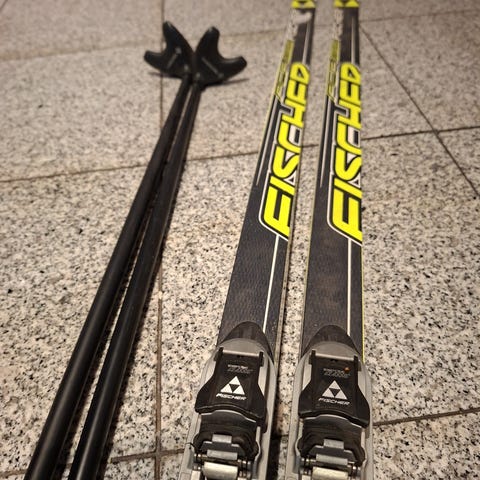 Hyväkuntoiset sukset 160 ja sauvat 137