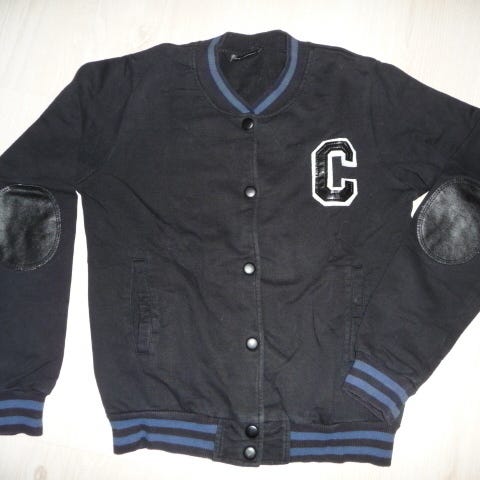 Musta bling bling huppuinen collegetakki,146/152cm.