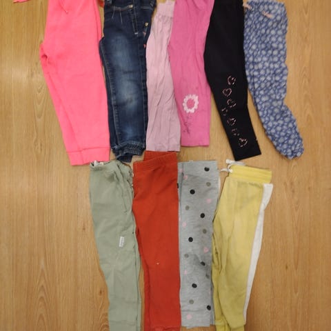 5 housut sisältävä housupaketti, olleet käytössä koossa 98/104. Käytetyssä kunnossa, ei reikiä. Mustat leggarit Noshin, lisäksi yhdet My little pony -farkut, 2 Lab.industries -farkut ja peuhin leggarit.