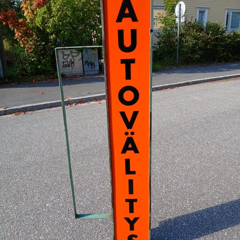 Faunattaren vanha valomainos. Leveys 134 cm. Poistettu toimivana. Sisällä alkuperäiset LED-valot, mutta johdot poikkaistu, joten vaatii uudelleen sähköistyksen. Muuten siisti kunto eikä paljon uudelle häviä, on vain roikkunut paikallaan.