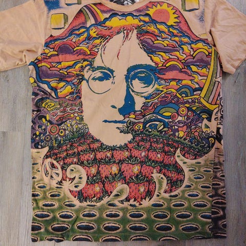 Parikymmentä vuotta sitten Ebaysta tilatut John Lennon pokat. Käytön jälkiä on hieman vaikka näitä ei ole oikeastaan koskaan edes käytetty kuin muutamia kertoja joulupukin rekvisiittana :) Kehykset ovat metallia ja rakenteellisesti täysin kunnossa. Kehysten mitat löytyvät kuvista.
