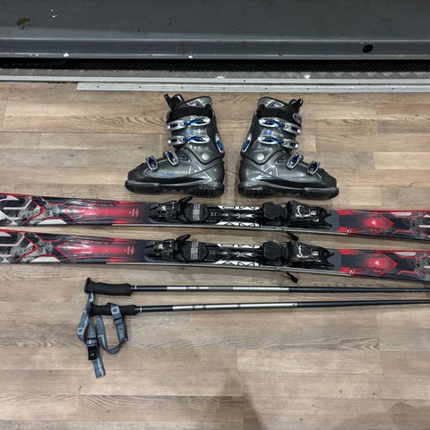 Siistit ja vähän käytetyt sukset. Ei oo enää autoo taloudessa ni ei tuu käytyä rinteessä. Ostettu Stadiumista, ovh 400e. Lekin sauvat joissa huiput remmit. Remmit tarvii asetella rukkasen päälle vain kerran, ja sit voi vaan tarvittaessa irrottaa lenkin sauvasta esim hississä. Saa helposti rukkaset kädessä irrotettuu.
