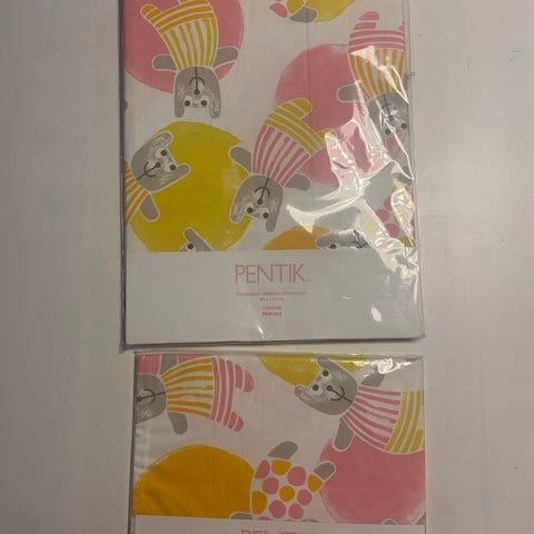 Käyttämätön Pentikin tyynyliina pakkauksessaan.