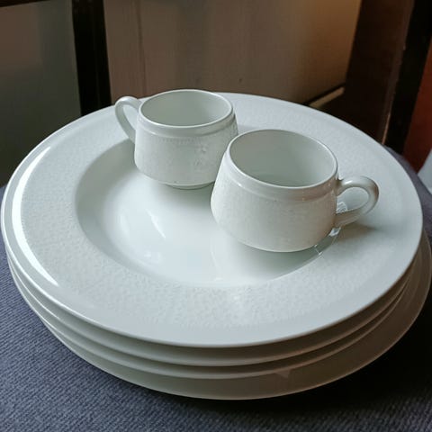 lautanen pitsireunaalla. Vaikka pikkuleivän tarjoiluun