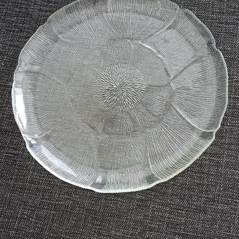 Lasinen kalakuvioinen tarjoilulautanen, pituus n52cm.