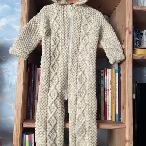 Koko n. 92. Haalari on itse tehty, niin tarkkaa kokomerkintää tai tietoa materiaalista ei ole.