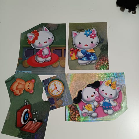 Kawaii pinkki tarroja eri väreissä ja erilaisissa ideoissa.
