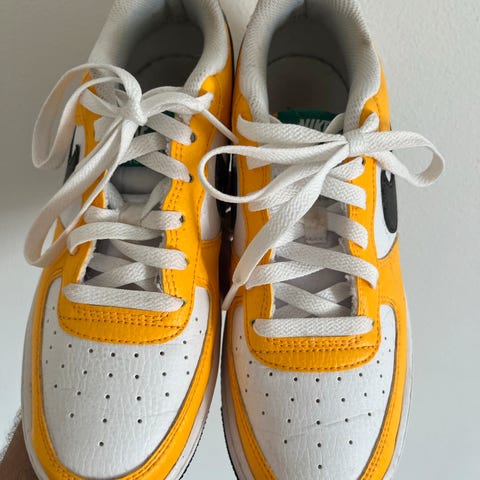 Vähän käytetyt punavalkoiset Nike Airit. Toisessa kengässä takana naarmu.