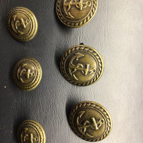 Siistit kullanväriset napit 8 kpl. Halkaisija hieman vajaa 2 cm.