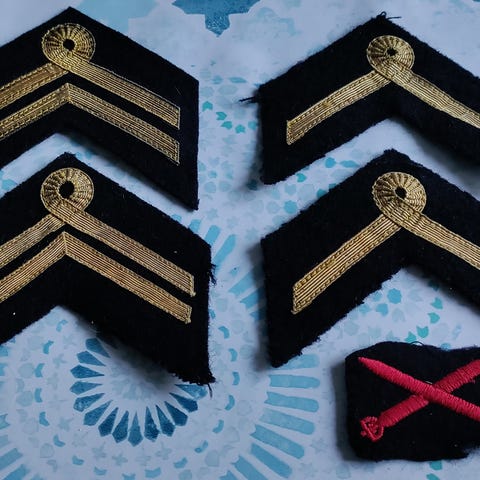 Myydään Puolustusvoimien vanhaan asepukuun kuuluneet käyttämättömät tiedustelijan (sissi) ja suojelun ommeltavat koulutushaaramerkit. Hinta on per merkki. Kuvissa olevat merkit ovat esimerkkejä, voit saada merkin toisesta valmistuserästä. Merkkien korkeus on 8,2 x 6,5 cm.