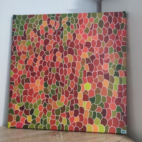 Mitenkilpikonnathymyilee: Lehmälive on alkanut (40x40 canvas)