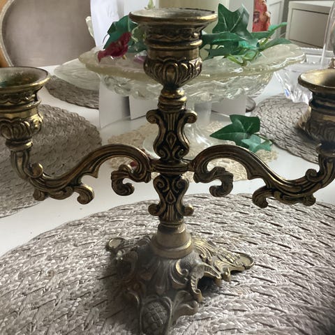 Harmaa kynttelikkö. Kolmelle tuikulle.