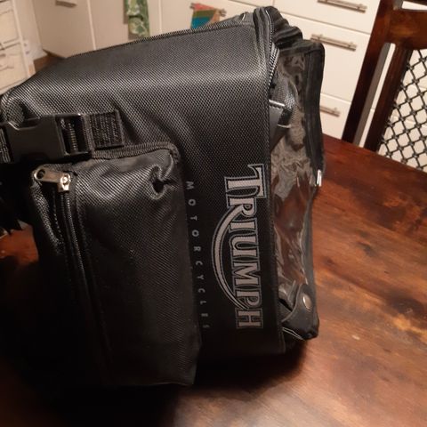 Käytetty Triumph tankkilaukku + kiinnikepala . Tarrakiinnikkeinen. Ollut kiinni Triumph Street triplessä