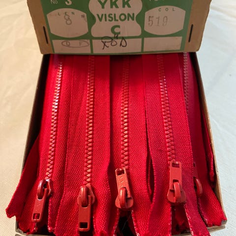 Vanhat ehjät vetoketjut. Väri punainen. YKK