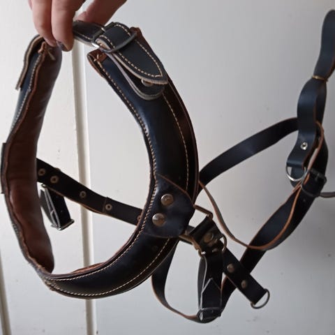 Myydään hyväkuntoiset, laadukkaat koiran nahkavaljaat (nailonvahvistetut) 2kpl. 35euroa/1kpl. Nahkavaljas on suunniteltu kestämään, nahkamateriaali vain paranee iän myötä. Koiran valjaat on säädettävissä rintakehän ympäryksestä. Näkyvät heijastimet kauttaaltaan, metalliset soljet sekä umpirengas talutushihnalle. Rinnanympärys 66cm - 92cm. Kaulanympärys 70cm. Savuttomasta kodista. Postikulut 9euroa. Yhdistelen postikuluja. En käytä ToriDiiliä.