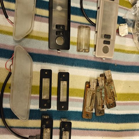 e34: 2x abs pumppuja, style 5 muovisia keskikuppeja 3kpl, vesiventtiili, m60 venakoppien muovit, hifi/luukullinen touring kattoverhoilu, 540ia touring moduuleja, etuvalojen ritilät, eteen oranssit vilkut, puhaltimen moottori, m60 startti, paljon kaikkea pikkusälää.