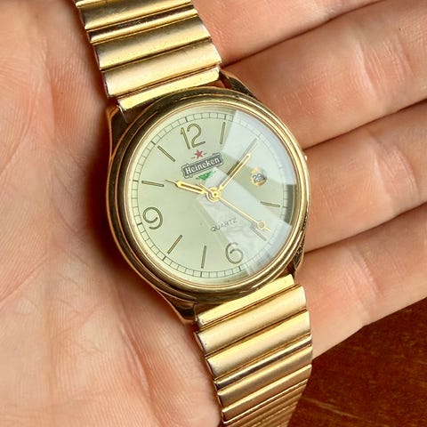 Uutta vastaavassa kunnossa. Kokonaispituus 24,5 cm. Säädettävä. Kellotaulun halkaisija 4 cm. Rannekkeen leveys 22 mm.