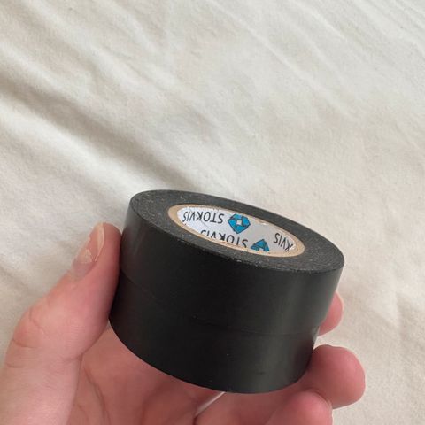 Kolme sähköteippirullaa. Kaksi pienempää pituus 10 metriö, leveys 15 mm. Isompi pituus 20 metriä ka leveys 18 mm.