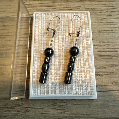 Hyväkuntoiset kauniit riippuvat hematiittikorvikset.
