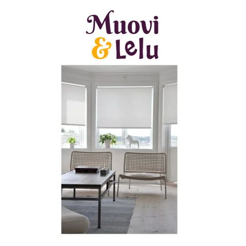 90 cm leveä ja 170 cm korkea valkoinen rulleverho.