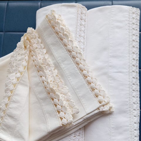 Myydään hurmaava vanha pitsinen tyynynpäällinen.