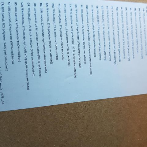 78 % puuvillaa, 22 % polyesteriä (väh. 90 % kierrätettyä)