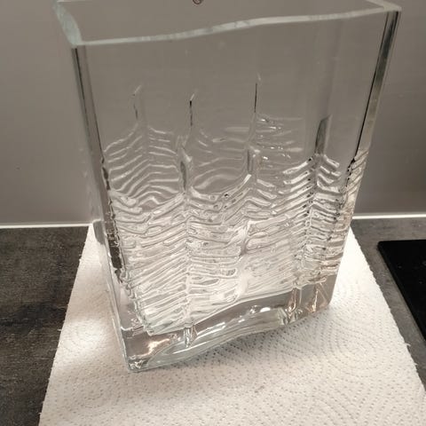Mielikuvituksellinen Santtu Mustosen suunnittelema ja signeeraama lasiteos. Hyvässä kunnossa, ei virheitä.