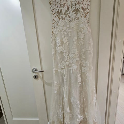 Myydään kahdesti häissä käytetty Enzoanin Blue Kamryn-häämekko. Koko 38 ja merenneito malli. Helmaa lyhennetty (omapituuteni 162 cm, hääpäivänä 12 cm korot) ja vyötäröstä kavennettu. Joustavaa kangasta ja hääpäivänä mekon kanssa oli helppo liikkua.
