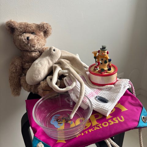 Toimii käsinukkena, leluna, somisteena.
