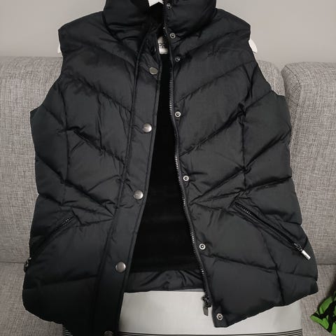 Myydään Esprit toppaliivi koko S. Erittäin hyvä kunto. Kiinnitys vetoketju ja nepparit. Edessä 2 taskua. Sisällä napillinen tasku ja kännykkätasku tarrasuljennalla. Materiaali: 50%untuva, 50% höyhen. Ulkopuoli 100% polyesteri.