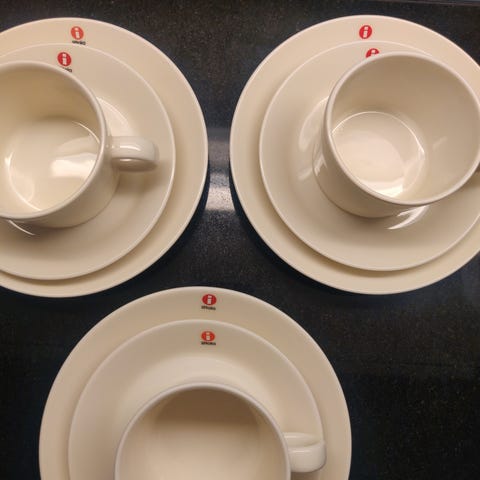 10kpl kahvikuppeja 1,5d, 10kpl tasseja, sekä kermakko. Iittala Teema sarjaa. Kunnoltaan ehjät ja siistit. Nopea nouto Runosmäki.