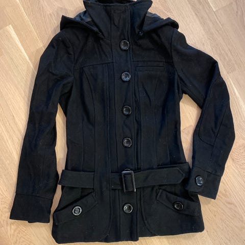 Myydään vain pari kertaa päällä ollut musta, Vero Modasta ostettu villakangastakki. Koko S. Nappikiinnitys, kultaiset napit.